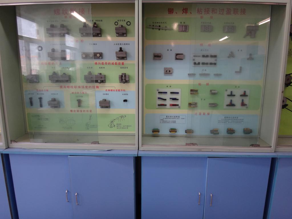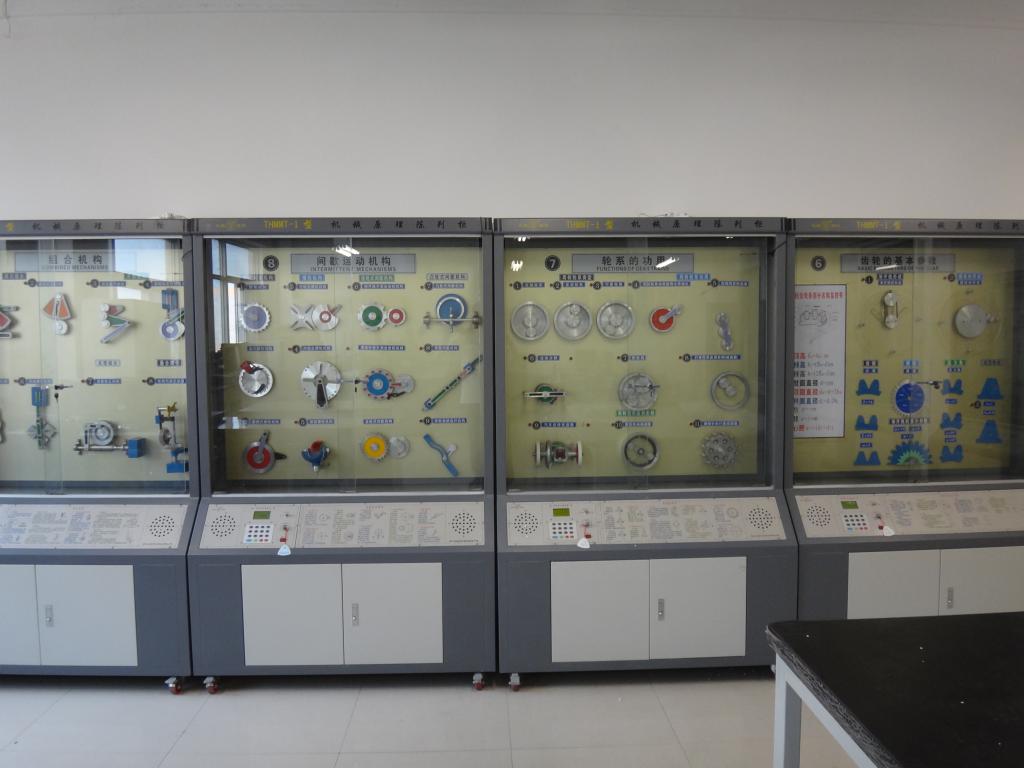 机械原理与机械设计实验室三个实验分室,现有仪器设备200余台套,使用面积约300平方米。主要仪器设备有:齿轮减速器、机械零件设计陈列柜、齿轮范成仪、机械传动优化综合测试试验台、轴系机构设计实验箱、智能带传动实验台、齿轮传动实验台、《机械原理》陈列柜、机构运动简图测绘模型、凸轮机构动态测试实验系统等。